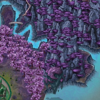 The Amethyst Vale is a mystical land shaped by the ancient Sky Gods. Most of the Vale remains uninhabited, aside from small, scattered clans of Harengons and gnomes. Its dense forests and jagged mountains make travel treacherous, and the waters that flow through the Vale are said to possess strange magical properties.