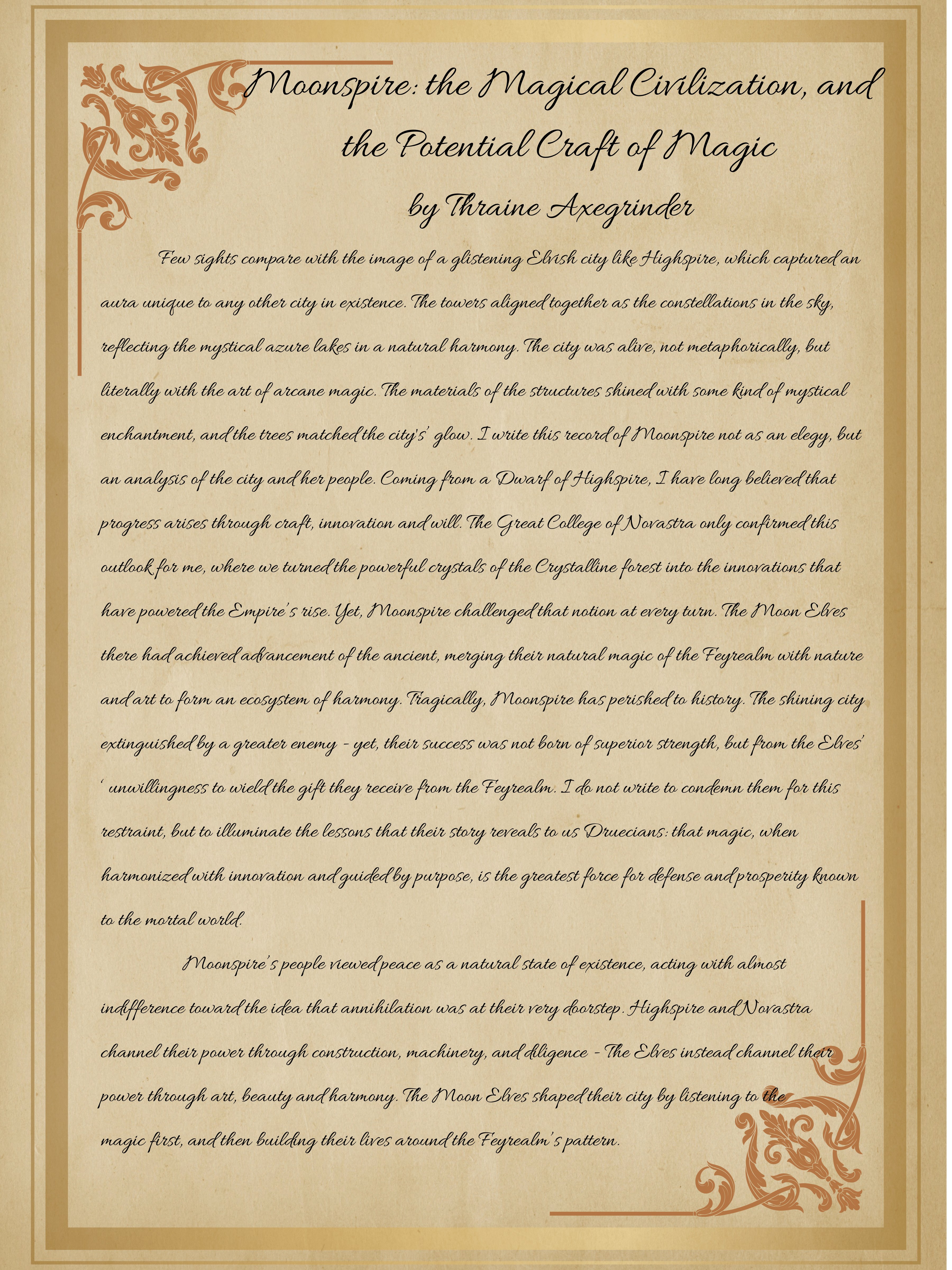 Moonspire The Magical Civilization, and the Potential Craft of Magic by Thraine Axegrinder (WORK IN PROGRESS)